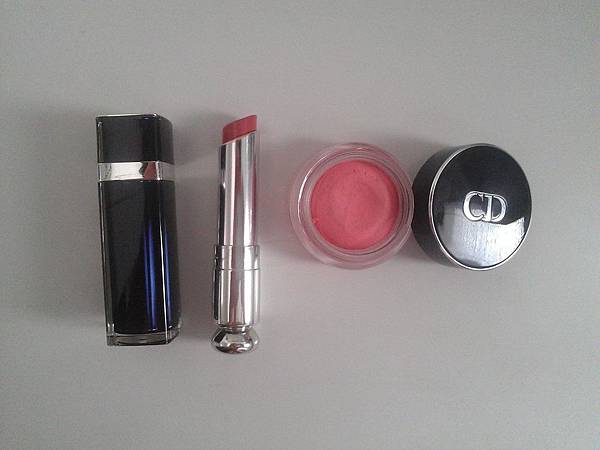 另一個最近的心頭好是前陣子出的限量腮紅膏,入手的是最粉嫩的Capri (851),搭配買了好一陣子都沒有認真用的唇膏Cherie Bow (356)。