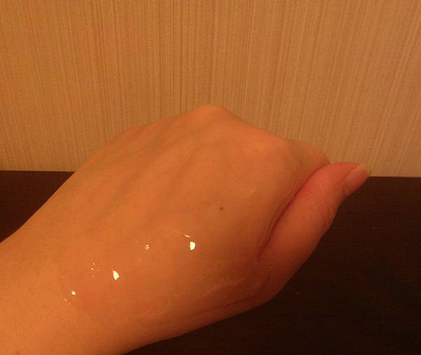卸妝凝露的質地比IPSA的卸妝蜜再「凝固」一點,在臉上不是那麼的好推,但也因此我會更放慢推動的速度,讓整個手掌慢慢在臉上滑動~