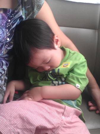在飯店接駁交通車上,因為我們的飯店-理想大地和遠來都有點距離,包寶幾乎都是在睡眠中度過的~