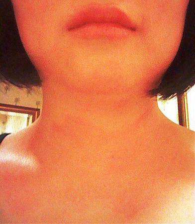 但是,因為理想大地的泳池在戶外,即使擦了SPF50的防曬,我這「見不得光」的頸子也還是開始急性大過敏~